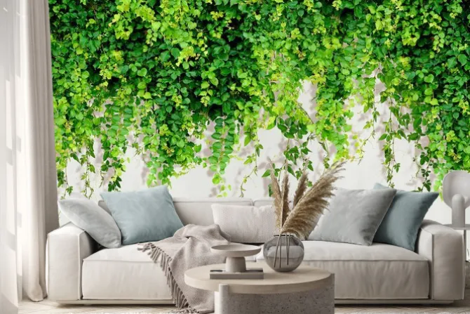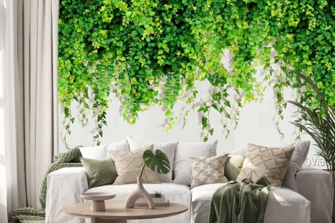 Naklejka: Ozdobne zielone pnącza zwisające z góry
