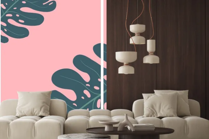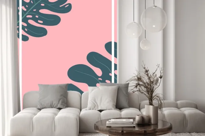drzewa, style, różowy, dżungla, flora, dekoracyjne, natura, zieleń, monstera