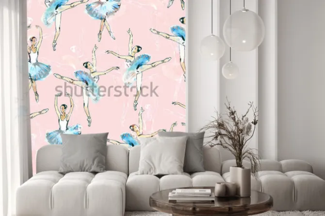 Przenoszony wzór baletniczy tancerze, czarny, biel i srebrny rysunek, akwarela obraz, dostęp do różowego tła..