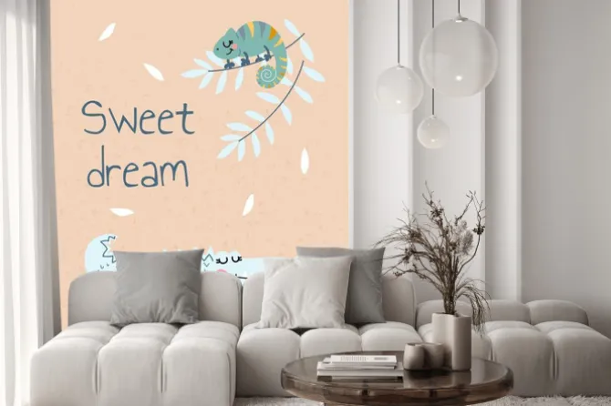 Scandinavian africa crocodile banner. Tropical animal with sweet dream inscription. Safari and jungle, wild life and fauna. Exotic aquatic predator, dangerous lizards. Cartoon flat vector illustration.