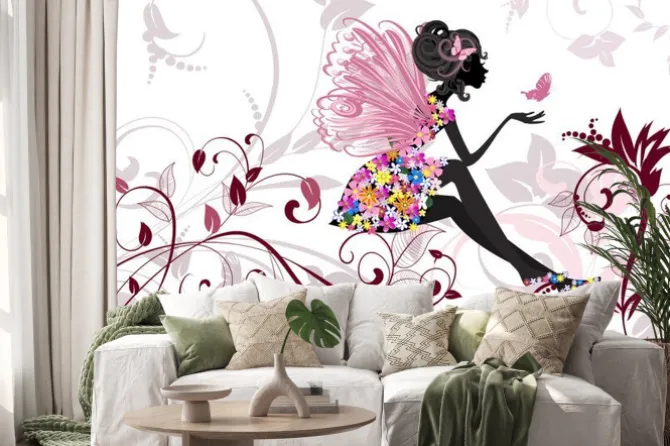 Naklejka: Siedząca wróżka z motylem w dłoni