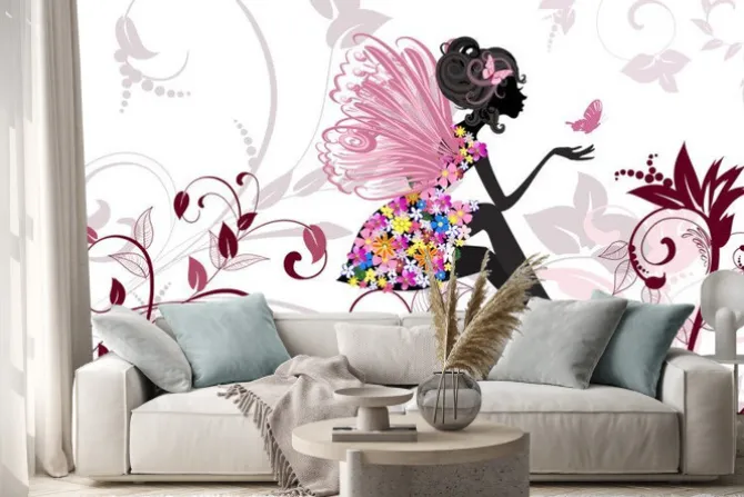 wróżka, motyle, ornament, kwiaty, dekoracyjne, retro, kobieta