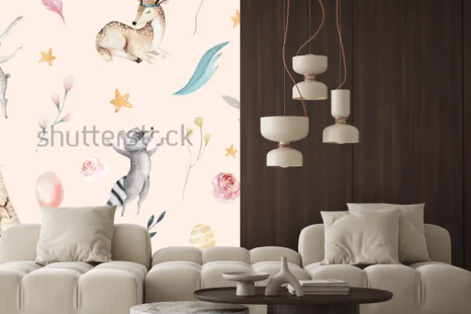 kwiaty, pokój dziecięcy, różowy, las, jeleń, dekoracyjne, biały