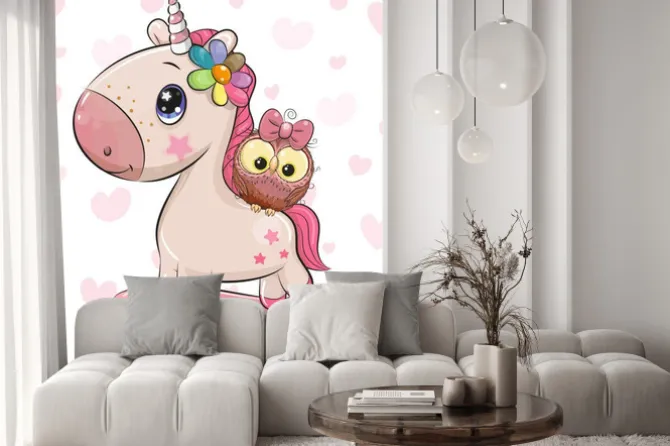 pokój dziecięcy, wróżka, konie, biały, gwiazdy, sowa, jednorożec