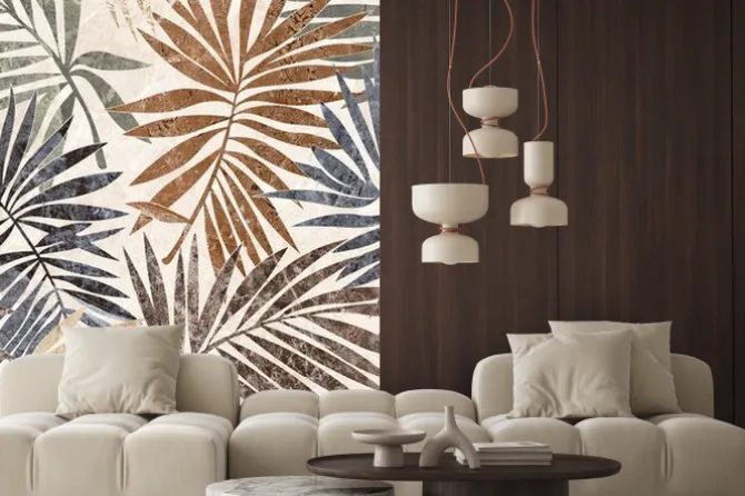 Tropikalna kompozycja z jesiennymi liśćmi.
