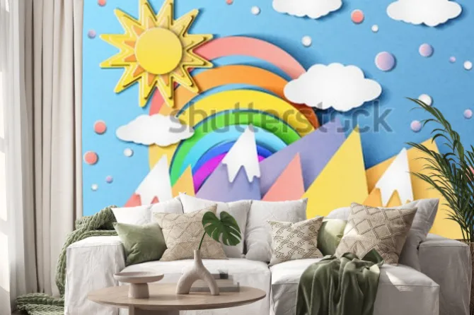 krajobrazy, pokój dziecięcy, góry, style, tęcza, niebo, dekoracyjne