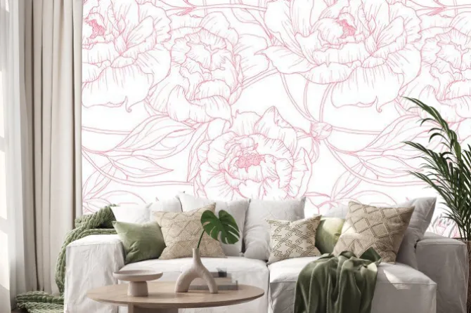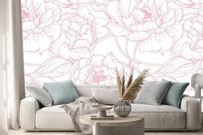 Naklejka: Wzór z czerwonym rysunkiem piwonii