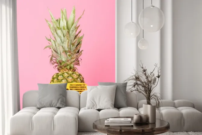 Naklejka: Zabawny i smaczny ananas w okularach przeciwsłonecznych na różowym