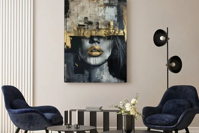 Obraz: Abstrakcyjny portret kobiety i wieżowce