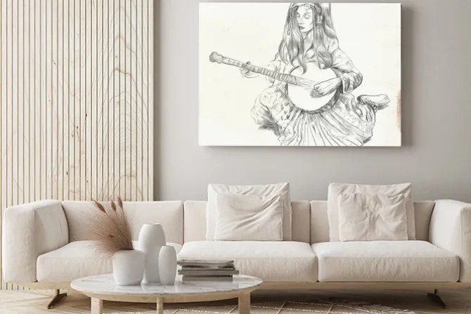 sztuka, muzyka, orientalny, szkic, grafika, rysunek, retro