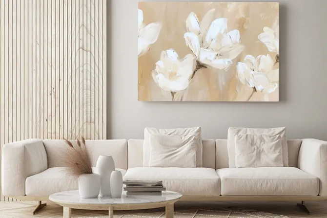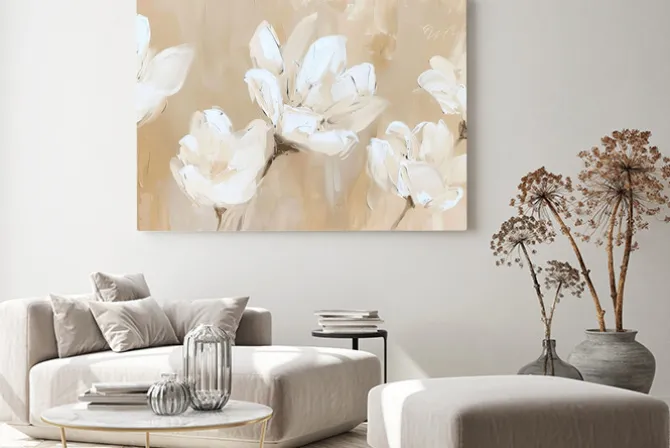 Obraz: Białe kwiaty jak malowane na beżowym tle