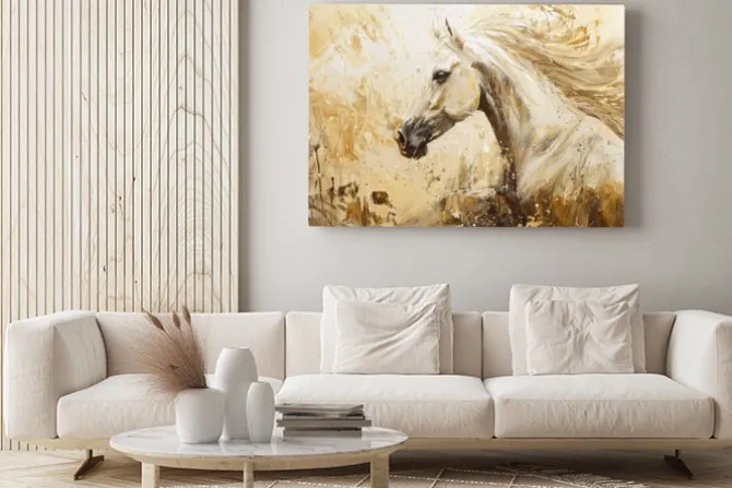 Obraz: Biały koń abstrakcyjny portret w stylu olejnym