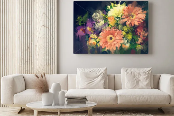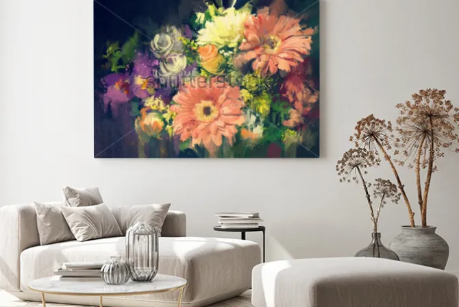 Obraz: Bukiet kwiatów w stylu malarstwa olejnego, ilustracja