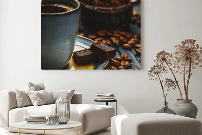 Be the first to review “Obraz: Filiżanka kawy na niebieskim drewnianym stole z ziaren kawy i” Anuluj pisanie odpowiedzi