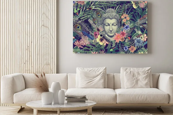 Be the first to review “Obraz: Głowa buddy wśród kwiatów i pawich piór” Anuluj pisanie odpowiedzi