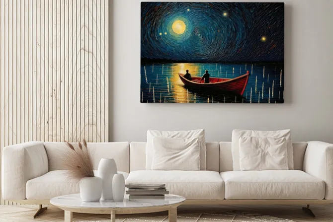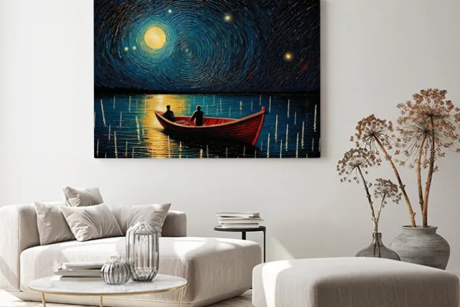 Be the first to review “Obraz: Gwieździsta noc krajobraz z morzem i łódką” Anuluj pisanie odpowiedzi