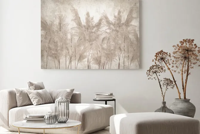 Trawy pampasowe na beżowym tle.