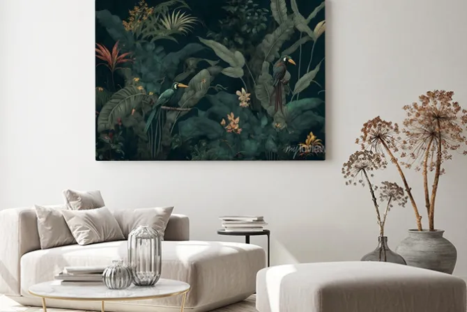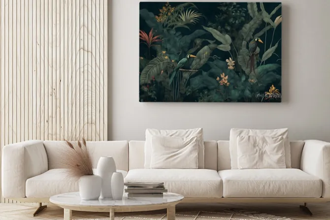 Be the first to review “Obraz: Tropikalna dżungla z ptakami w ciemnych odcieniach” Anuluj pisanie odpowiedzi