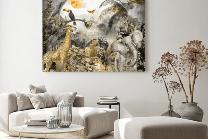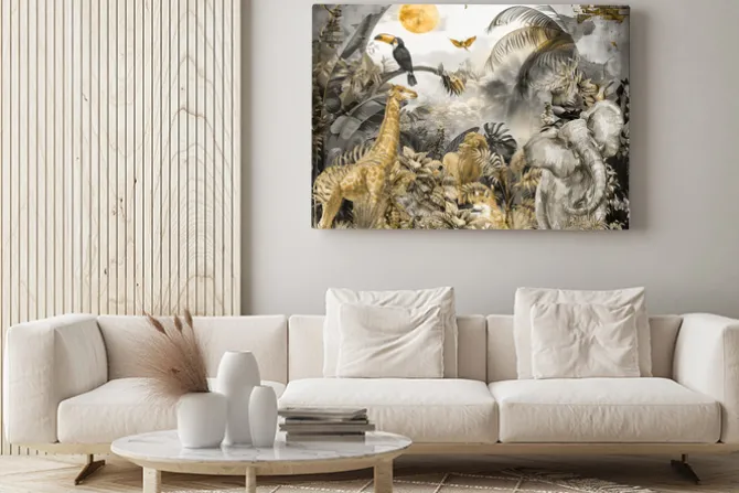 Obraz: Zwierzątka safari w akwarelowej dżungli z roślinami