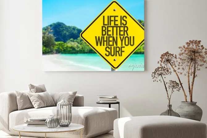 Obraz: Życie jest lepsze, gdy surfujesz znak z plaży w tle