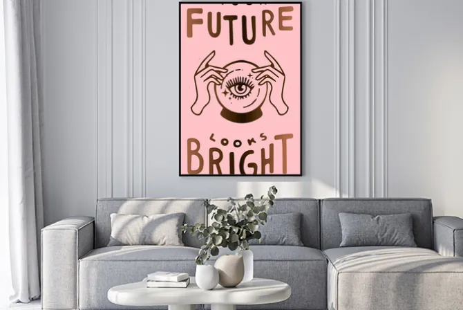 Plakat: A magic ball with rays of light in the hands of line art , instagram