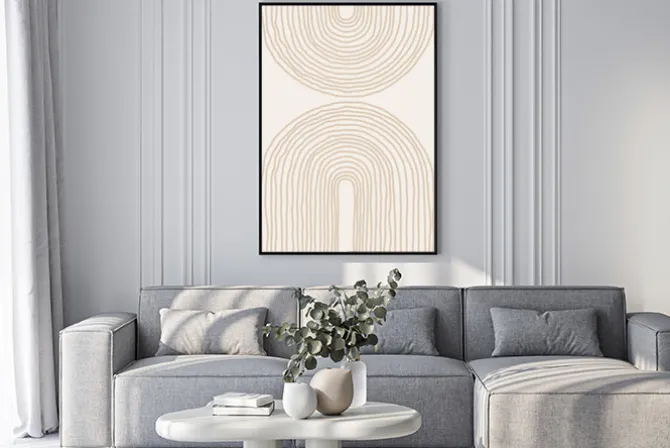 Abstrakcyjne łuki geometryczne na beżowym tle.