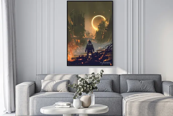 Be the first to review “Plakat: Astronauta stojący w spalonym mieście i patrzący na żółty świecący” Anuluj pisanie odpowiedzi