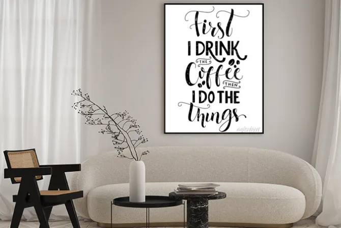 typograficzne, napis, motywacyjny, kuchnia, kawa, znani artyści, motywacyjne, ilustracje, biały