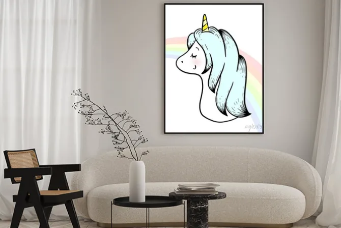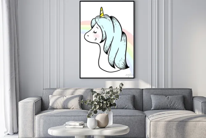 jednorożec, ładny, ilustracje, zwierzęta, pokój dziecięcy, bajki, tęcza, gwiazdy, rysunek