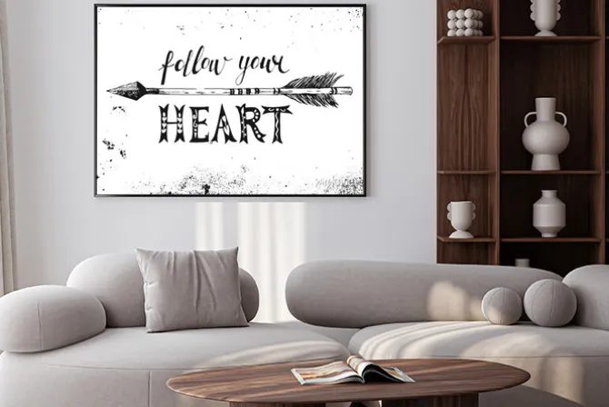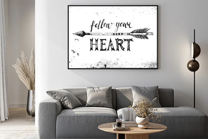 Plakat: Idź za głosem serca. ręcznie rysowane litery