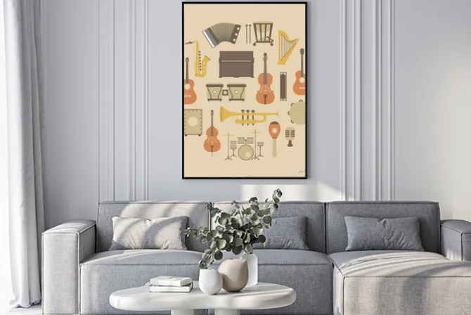 instrumenty, ludowy, muzycy, gitara, jazz, muzyka, rysunek, ilustracje, retro