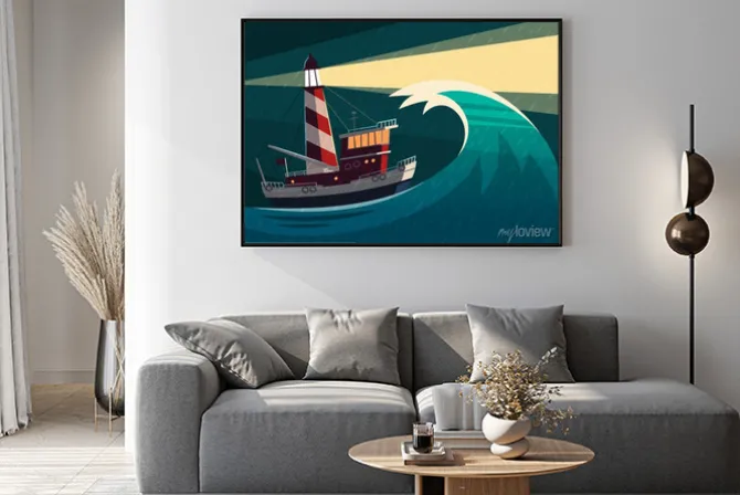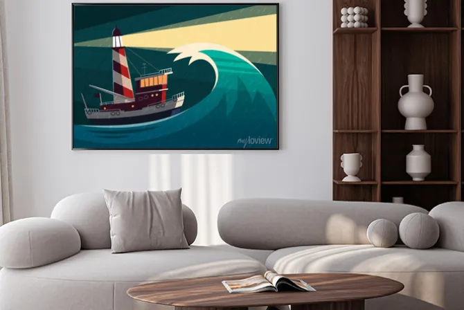 latarnia morska, morze, statki, ocean, fala, plaża, niebieski, rysunek, ilustracje