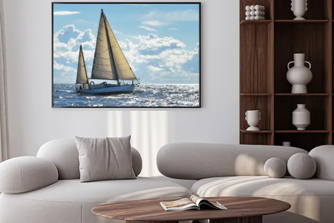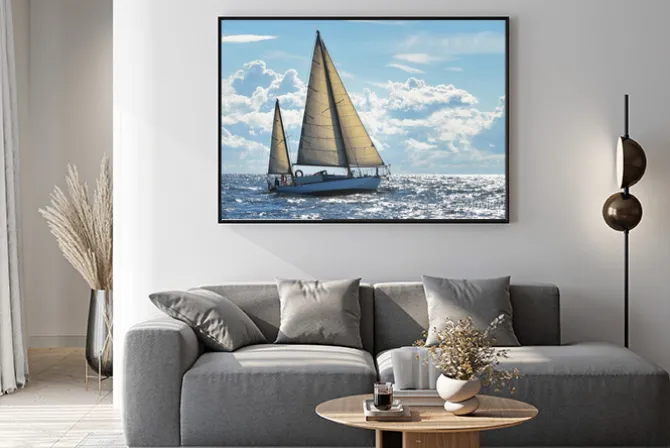 Plakat: Jacht żaglowy w słoneczny dzień w wodach zatoki ryskiej