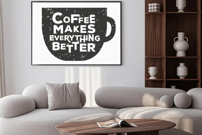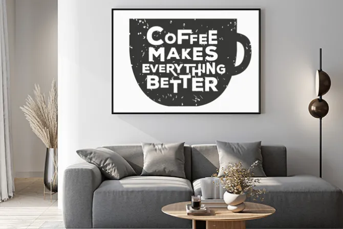 Plakat: Kawy sprawia, że wszystko lepiej – creative cytatu. wektor