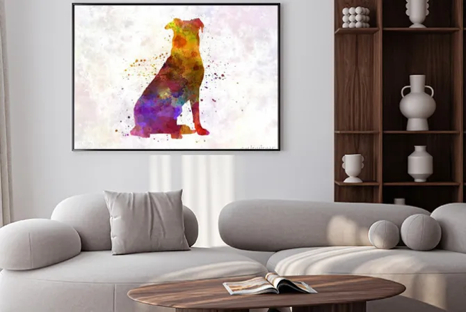 Plakat: Kolorowa sylwetka psa na akwareli