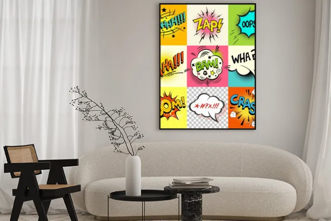 Plakat: Komiks wyrażenia! zestaw komiksów pęcherzyków książka słowa i