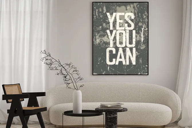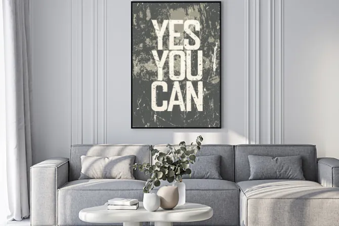 Plakat: Motywacyjne plakat z napisem „yes you can”. grunge stylu