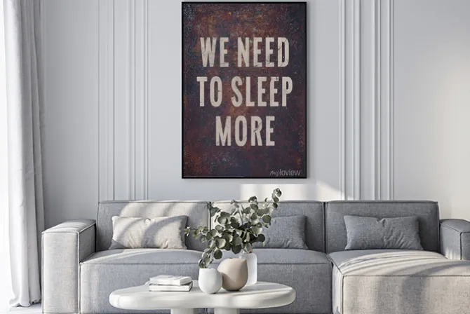 Plakat: Motywacyjny plakat na zardzewiały metal trzeba spać więcej.