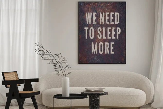 Motywacyjny plakat na zardzewiały metal TRZEBA spać więcej..