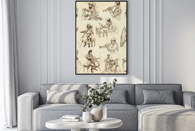 muzycy, gitara, jazz, muzyka, szkic, kolekcje, znani artyści, instrumenty, grafika