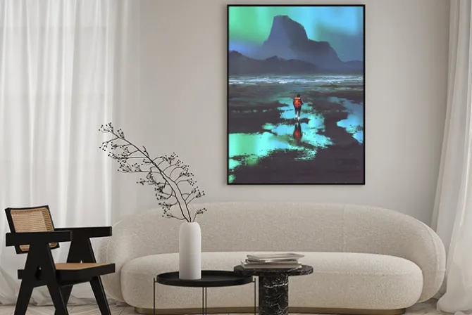 Be the first to review “Plakat: Noc scenerii turystą z plecakiem patrząc na góry i kolorowe światło” Anuluj pisanie odpowiedzi