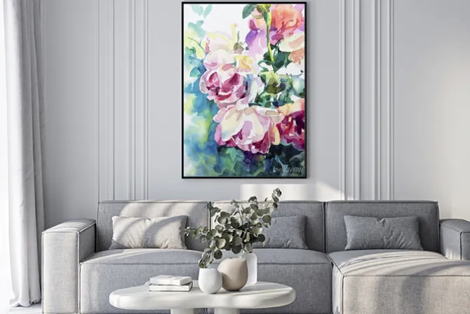 Oryginalny obraz akwarelowy abstrakcyjnych róż.