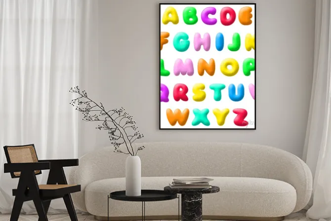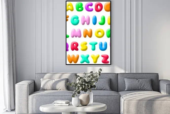 alfabet, angielski, malarstwo, rysunek, graficzny, pokój dziecięcy, sztuka