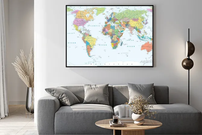 Plakat: Polityczna mapa świata – granice, kraje i miasta