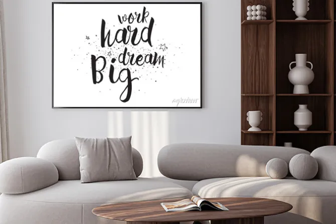Plakat: Pracuj ciężko, sen wielki napis. kartkę z życzeniami z kaligrafii.