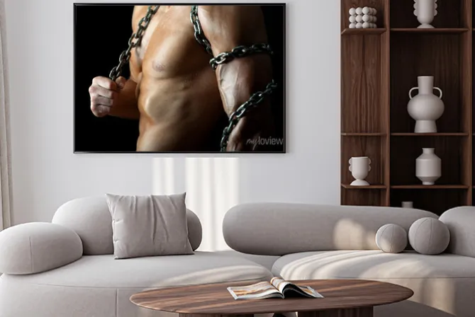 Plakat: Przystojny i muskularny facet z łańcuchem