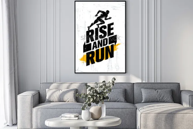 Plakat: Rise and run. maraton sport wydarzenie motywacja cytat plakat