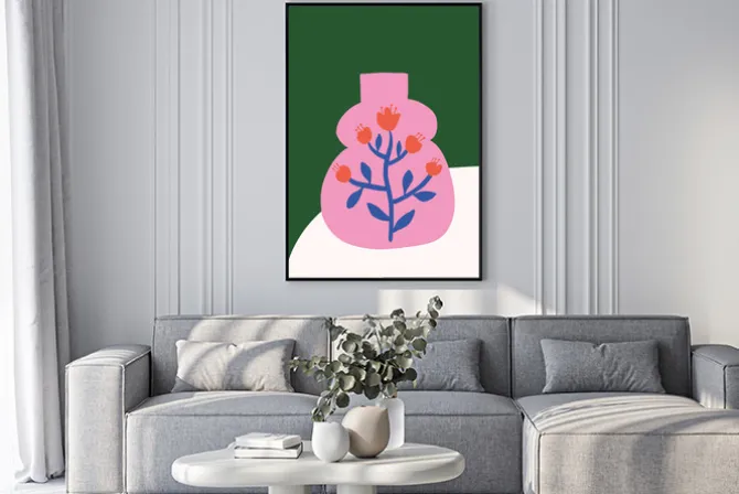 Różowy wazon z kwiatami nowoczesna abstrakcja.