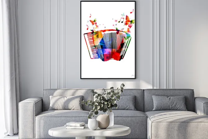 Plakat: Rysunkowy akordeon z motywem muzyki