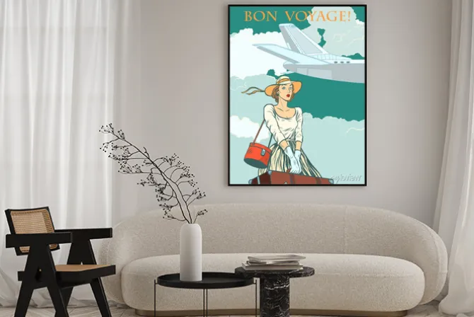 Plakat: Samolot pasażerski dziewczyny bon voyage